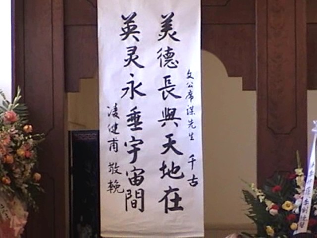 自己撰了挽联、讣告。一月二十一日有追思仪式,灵堂中 就有他这副自挽的对联: